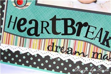 This card was created with some of my favorite supplies, October Afternoon prints and Thickers "Naked" letters. I love the shaped papers that are being sold lately and a fun use for them is to just use a portion on a card. I added the Diamond Glitter 3-D Fashion paint to the thin turquoise border on the paper. I love this glitter paint because it adds glitter but still lets you see the color underneath. It is hard to tell from the photo, but I coated each of the tiny black letters with the Aleene's Paper Glaze by Tulip. That gave them a great epoxy look that adds alot of charm to the card.